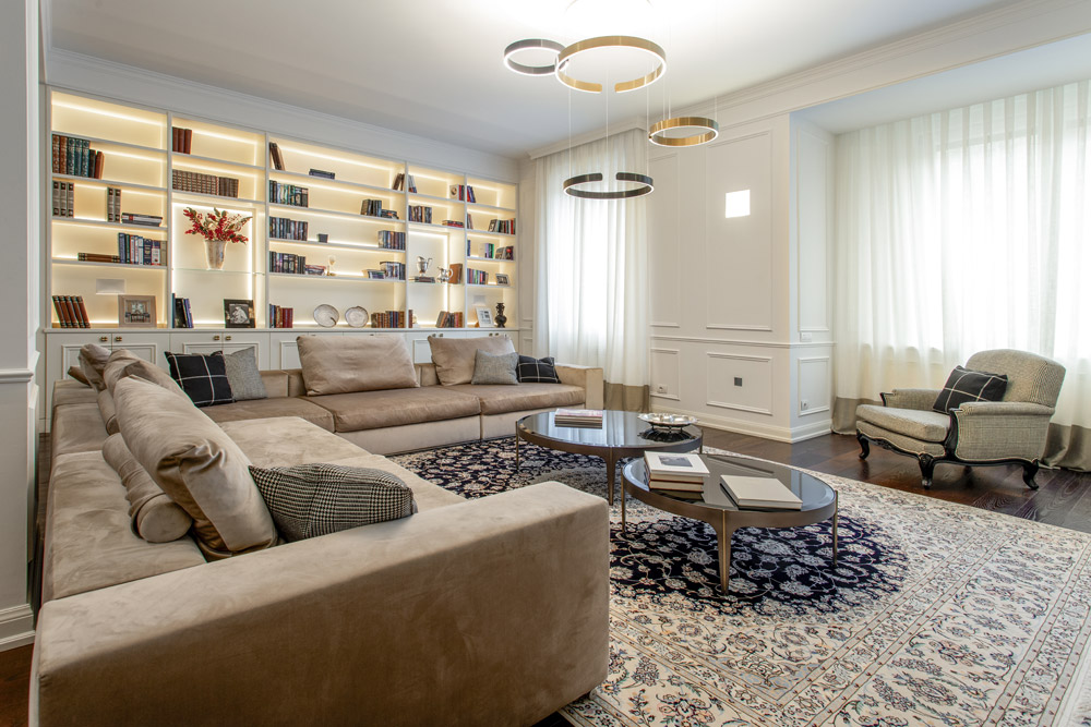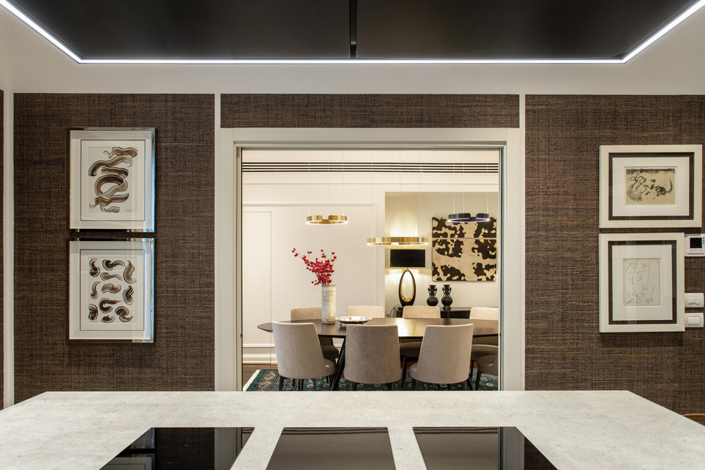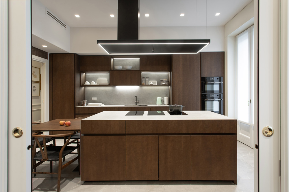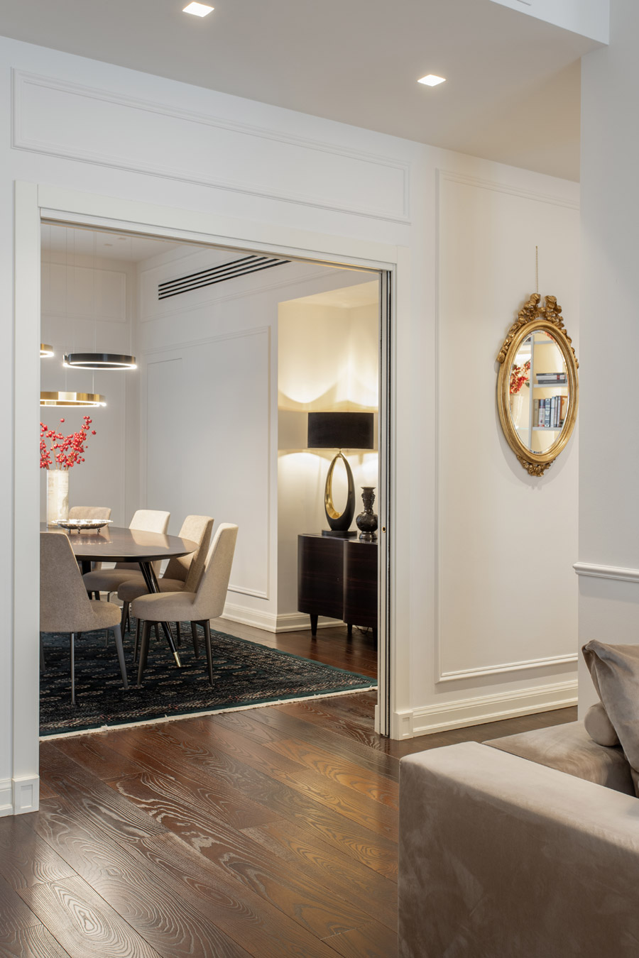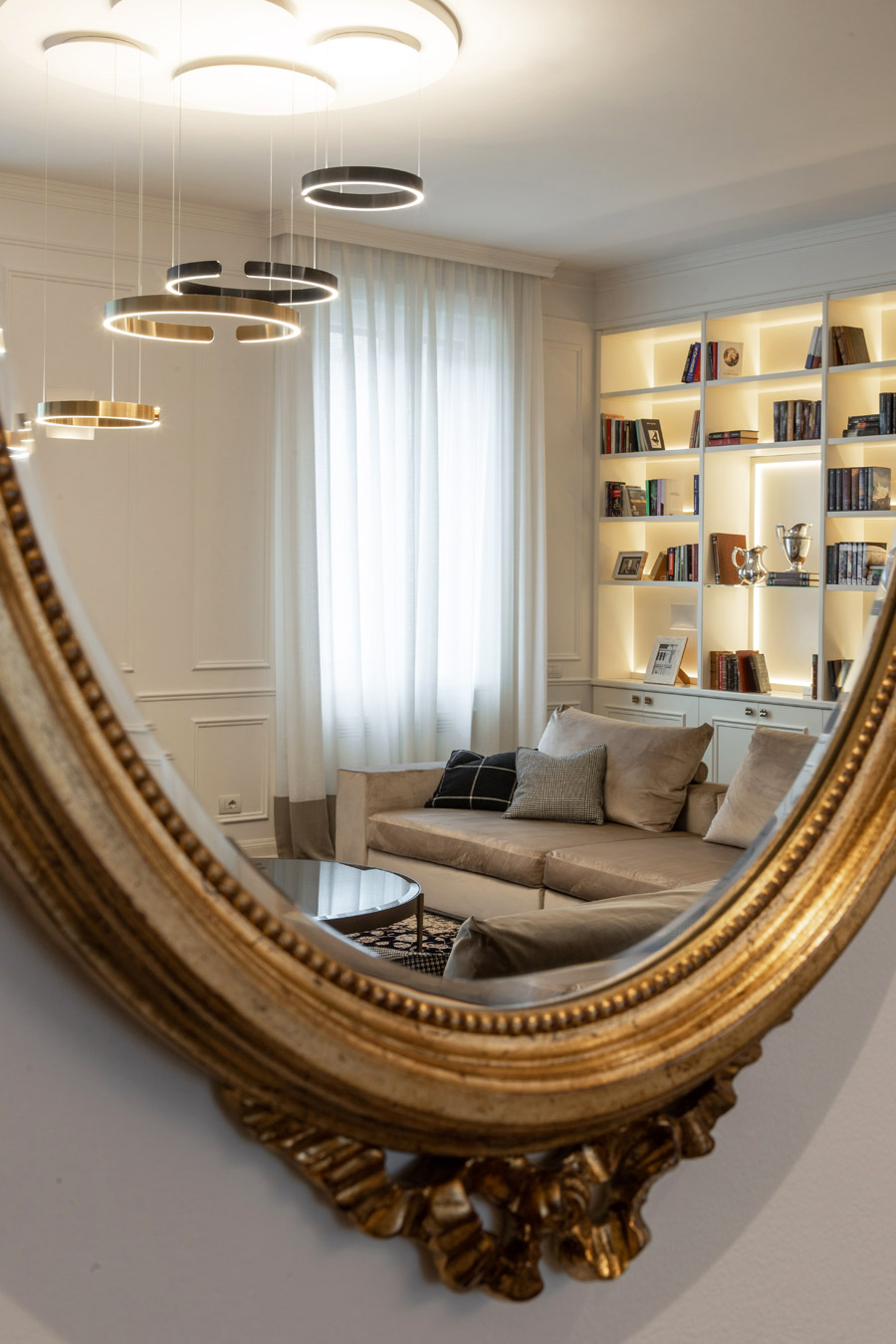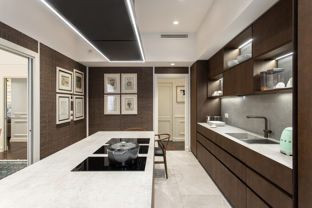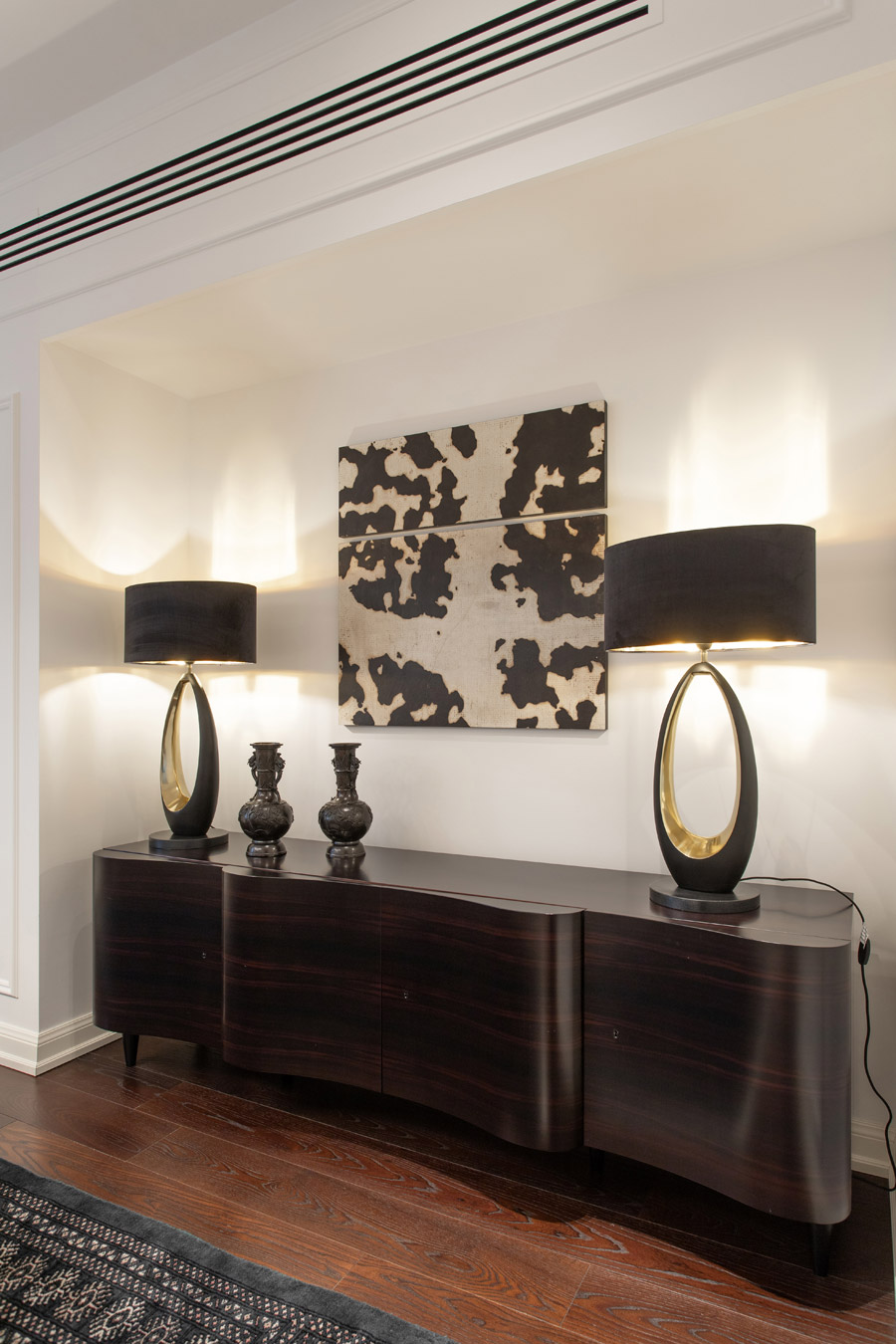 Restyling di un’abitazione elegante, dove arredi di design, materiali pregiati e opere d’arte valorizzano ogni ambiente: dall’ingresso scenografico alla zona living, fino alla zona notte con camere e bagni su misura.