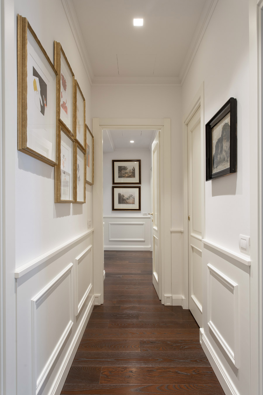 Il corridoio impreziosito da Lambris color latte come le pareti conduce alla zona notte.