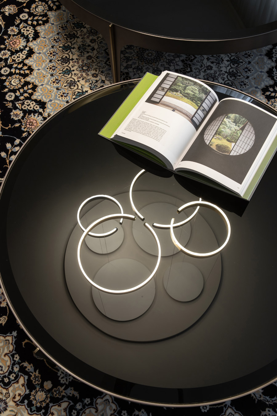 Materiali pregiati, arredi sartoriali e dettagli artistici definiscono un ambiente intimo e sofisticato.