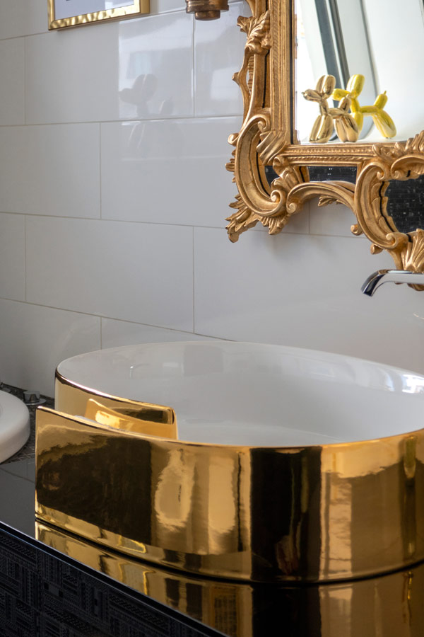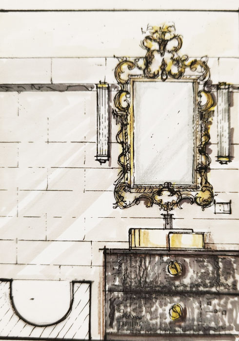 Lavabo in ceramica di Flaminia e prezioso specchio di Spini.