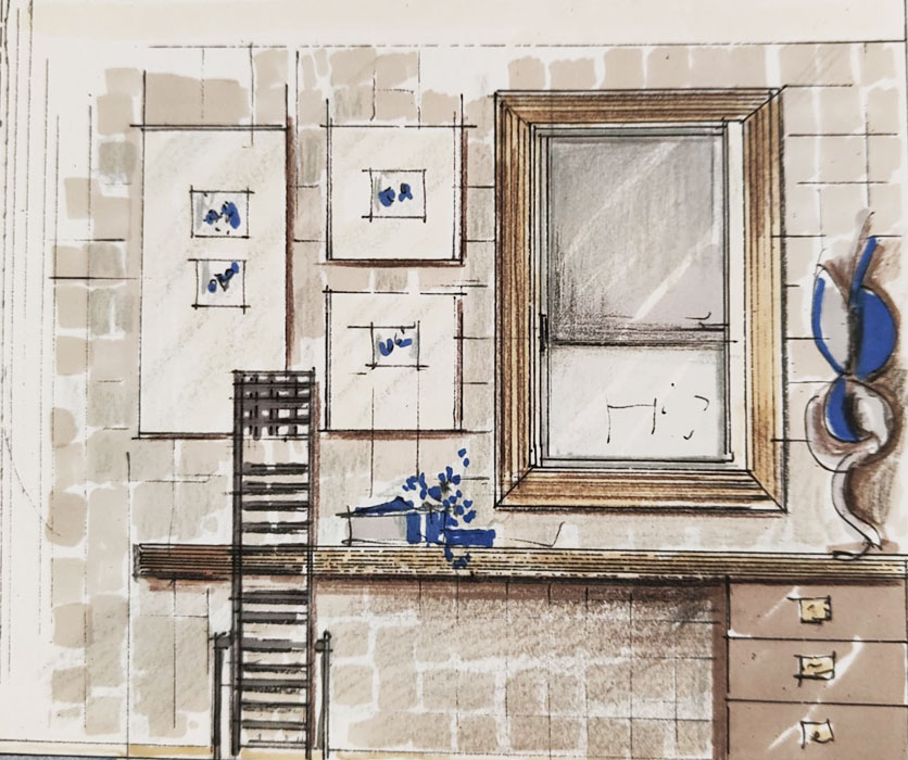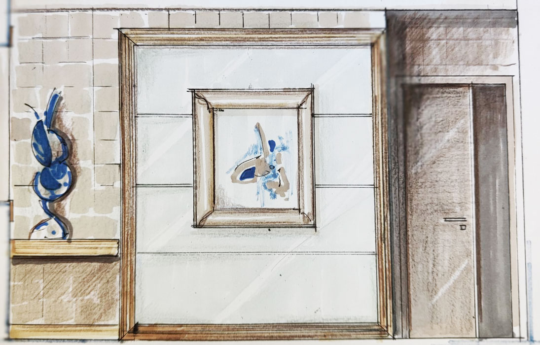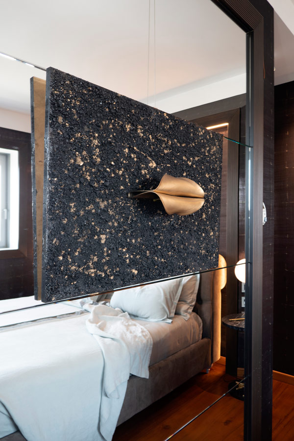 Sullo specchio un’opera dell’artista Sigis.