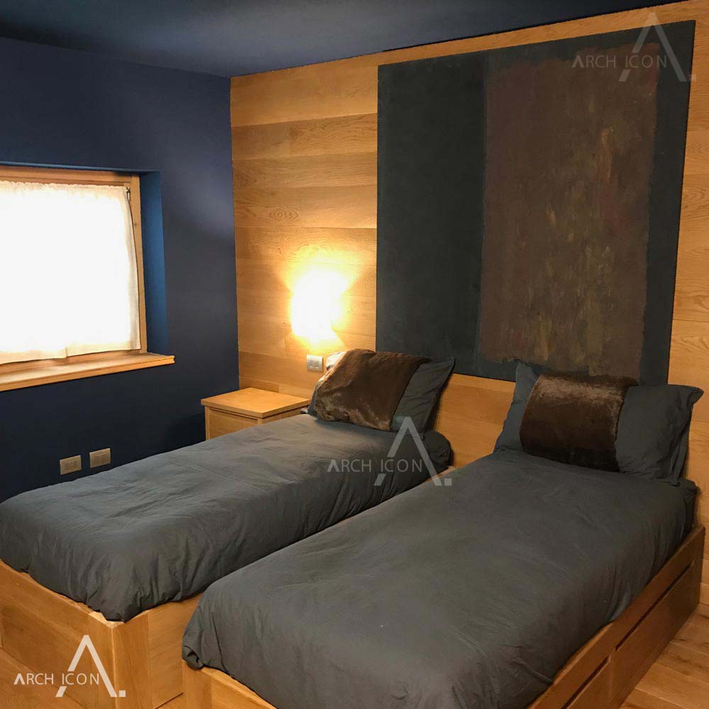 Il piano mansardato è destinato alla zona notte con tre camere da letto e i relativi bagni.