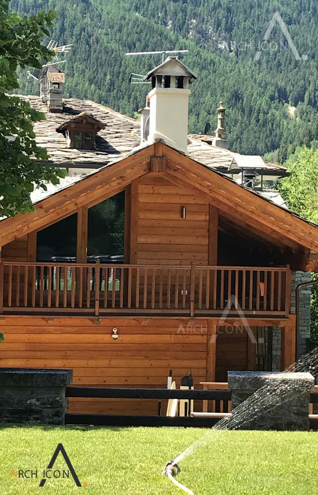 Questo grande chalet a Courmayeur si sviluppa su tre piani uniti anche da un ascensore interno.
