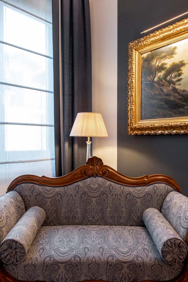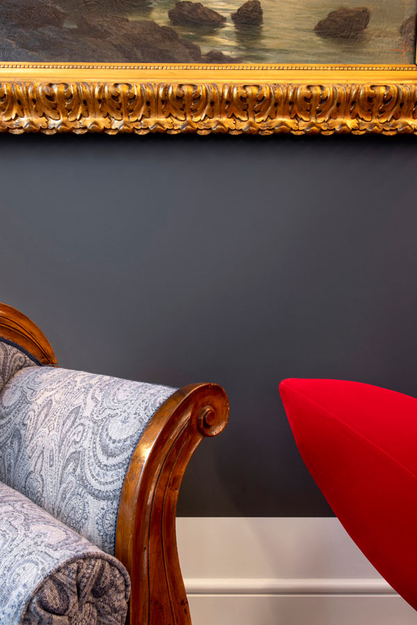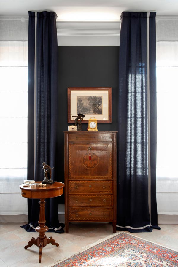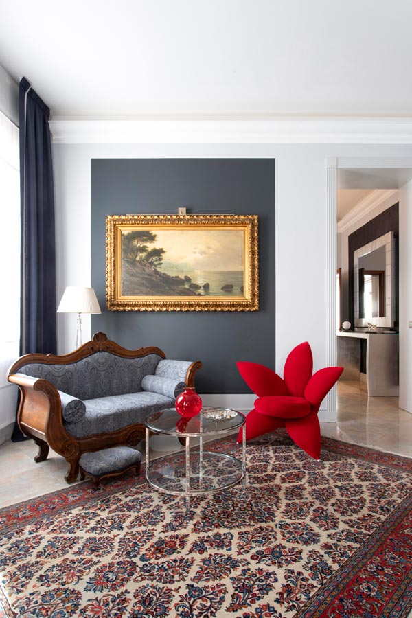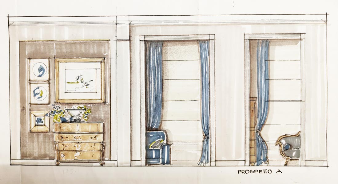 Il filo conduttore è la richiesta della committenza di collocare armoniosamente pezzi di famiglia (arredi, quadri, oggettistica) di varie tipologie appartenenti a differenti periodi stilistici.