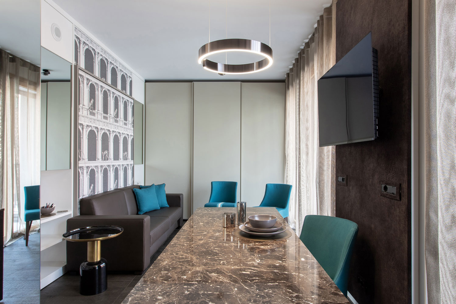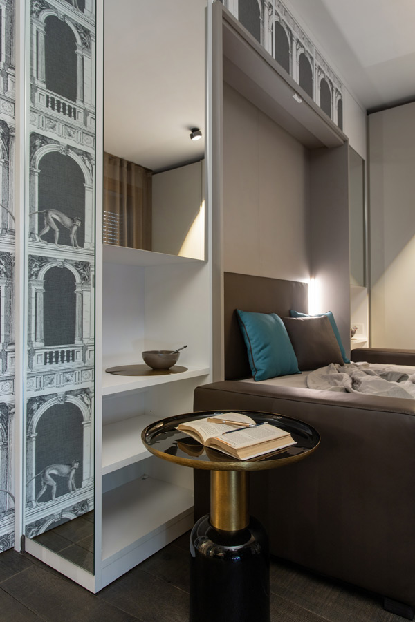Questo piccolissimo appartamento nel centro di Milano racchiude tutto ciò che serve per il vissuto quotidiano senza trascurare praticità, eleganza e ricerca di materiali.
